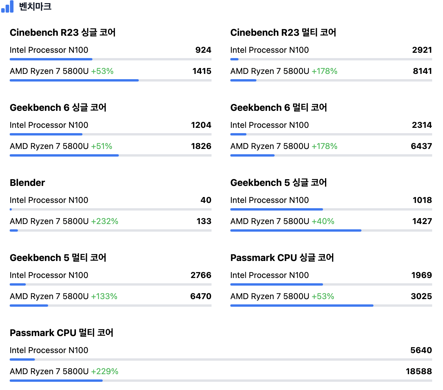 | N100 | 4코어 / 4스레드 | 3.4GHz | 2023 | 6W | 974점 | 1,750점 |